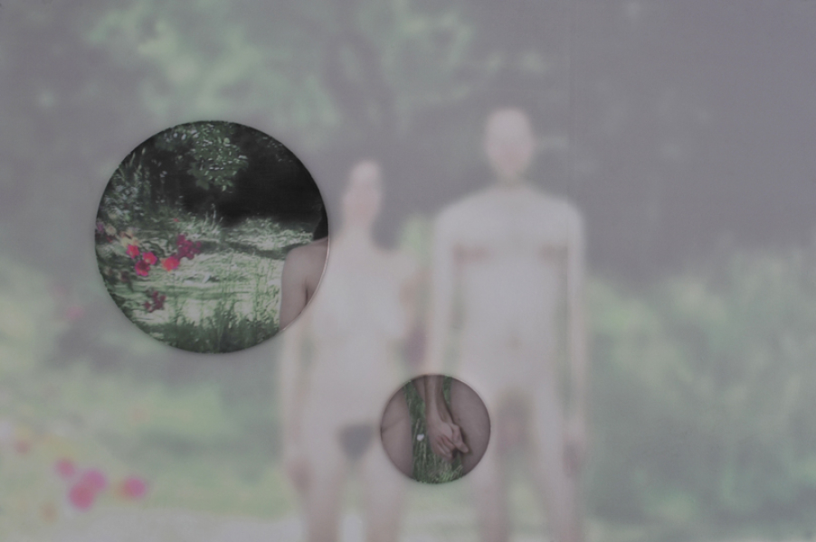 Räumliche Intervention zum Thema »eden«. Diese entstand in Zusammenarbeit mit Mitarbeitern der Kommunikationsagentur Birke & Partner in Erlangen im Rahmen eines einmonatigen Artist in Residence Projekts. In Einzelinterviews mit den «Kollegen auf Zeit« sammelte ich Eindrücke von deren Vorstellung vom Paradies. Die von meinen Gesprächspartnern zur Verfügung gestellten Fotografien wurden zu einem collageartigen Gesamtbild vereint, weiter bearbeitet und im Eingangsbereich als raumhohe Landschaftskomposition präsentiert. Einzelne Bildelemente wurden durch gezielt montierte Objektkästen akzentuiert. Ergänzend dazu wurden an den Wänden der Gängen handschriftliche Textfragmente der Interviews aufgebracht. (Fotografien Michaela Moritz) 2013