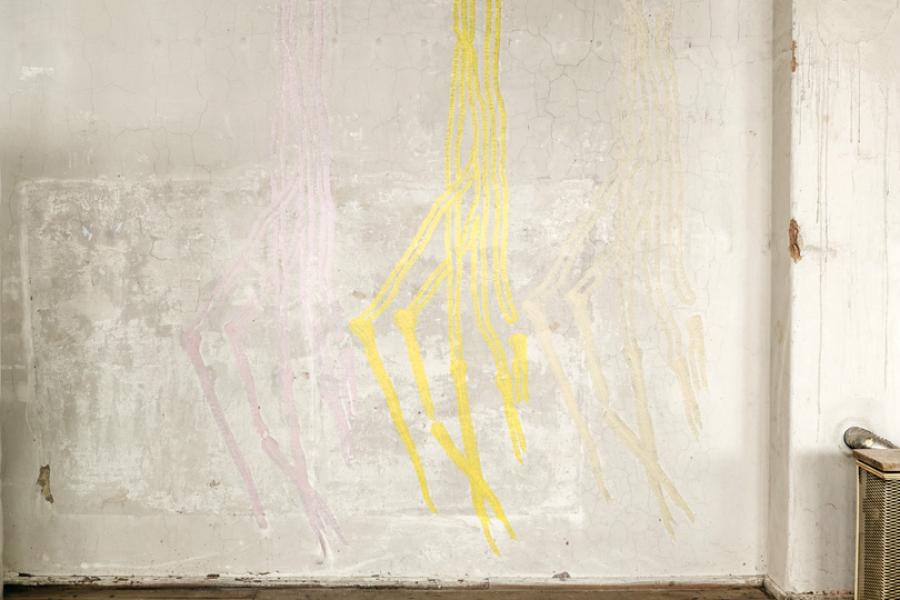 Klebebandzeichnung auf Wand, ca 300 x 300, (Fotografien Ingo Foertsch) 2017